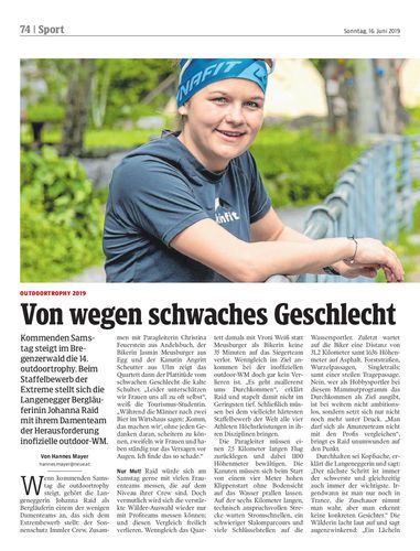 Kommenden Samstag steigt im Bregenzerwald die 14. outdoortrophy. Beim Staffelbewerb der Extreme stellt sich die Langenegger Bergläuferinin Johanna Raid mit ihrem Damenteam der Herausforderung inofizielle outdoor-WM.