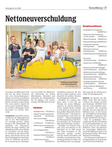 Trotz Investitionen in Millionenhöhe weist der Lustenauer Gemeindehaushalt 2019 keine Nettoneuverschuldung auf.