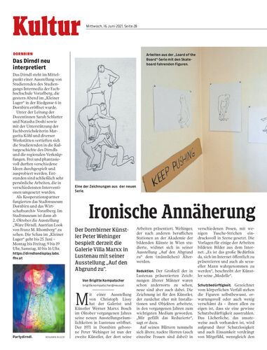 Der Dornbirner Künstler Peter Wehinger bespielt derzeit die Galerie Villa Marxx in Lustenau mit seiner Ausstellung „Auf den Abgrund zu“.