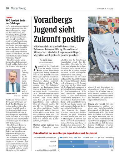 Mädchen zieht es an die Universitäten, Buben zur Lehrausbildung. Umwelt- und Klimaschutz sind den Jungen ein Anliegen. Migration wird großteils positiv gesehen.