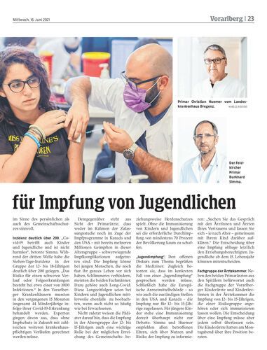 Primarärzte der Kinder- und Jugendabteilungen sprechen sich für Immunisierung von 12- bis 15-Jährigen aus.