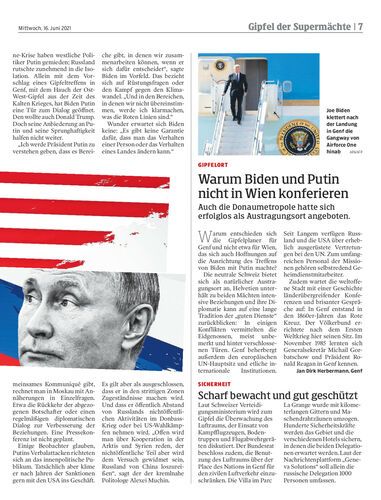 Heute ab 13 Uhr treffen sich US-Präsident Joe Biden und sein russischer Amtskollege Wladimir Putin zum Gipfel der Großmächte in Genf. Es ist ein heikles Treffen. Ob es eine gemeinsame Erklärung geben wird, ist unklar.