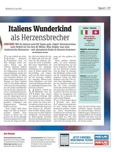 Porträt. Mit 16 Jahren und 242 Tagen gab „Gigio“ Donnarumma sein Debüt im Tor des AC Milan. Was folgte, war eine italienische Romanze – mit abruptem Ende in diesem Sommer. Von Matthias Janisch