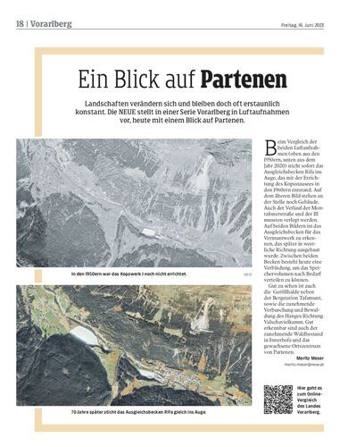 Landschaften verändern sich und bleiben doch oft erstaunlich konstant. Die NEUE stellt in einer Serie Vorarlberg in Luftaufnahmen vor, heute mit einem Blick auf Partenen.
