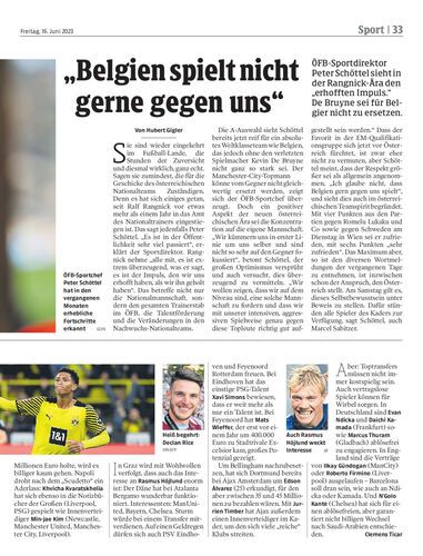 ÖFB-Sportdirektor Peter Schöttel sieht in der Rangnick-Ära den „erhofften Impuls.“ De Bruyne sei für Belgier nicht zu ersetzen.