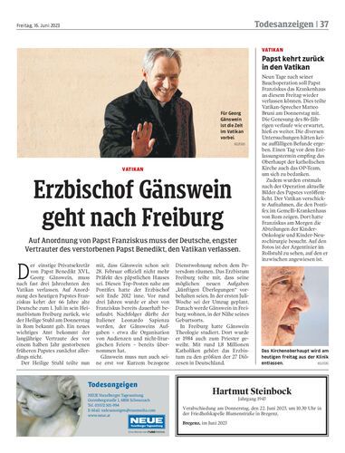 Erzbischof Gänswein geht nach Freiburg