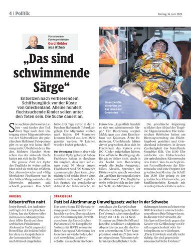 Entsetzen nach verheerendem Schiffsunglück vor der Küste von Griechenland. Alleine hundert fluchtsuchende Kinder sollen unter den Toten sein. Die Suche dauert an.