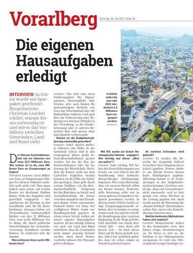 Interview. In Götzis wurde ein Sparpaket geschnürt. Bürgermeister Christian Loacker erklärt, warum dieses notwendig ist und wie er das Verhältnis zwischen Gemeinden, Land und Bund sieht.