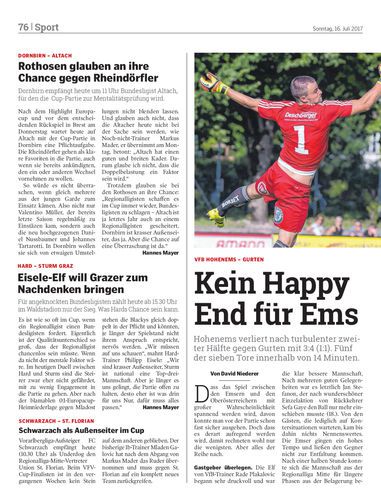 Hohenems verliert nach turbulenter zweiter Hälfte gegen Gurten mit 3:4 (1:1). Fünf der sieben Tore innerhalb von 14 Minuten.