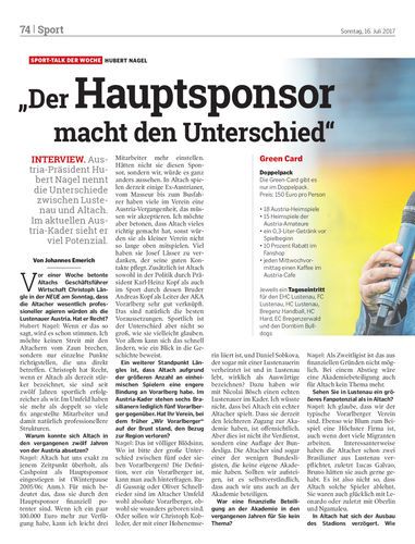 Interview. Austria-Präsident Hubert Nagel nennt die Unterschiede zwischen Lustenau und Altach. Im aktuellen Austria-Kader sieht er viel Potenzial.