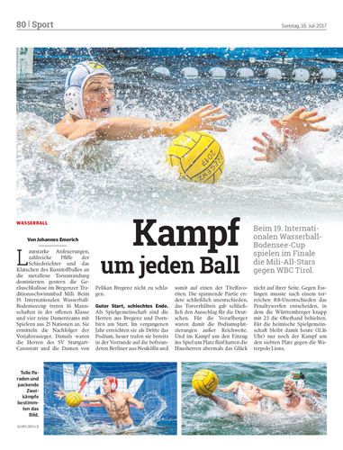 Beim 19. Internationalen Wasserball-Bodensee-Cup spielen im Finale die Mili-All-Stars gegen WBC Tirol.