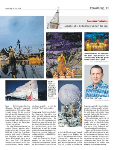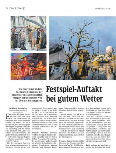 Die Eröffnung und die Seebühnen-Premiere der Bregenzer Festspiele dürften morgen bei trockenem Wetter über die Bühne gehen.