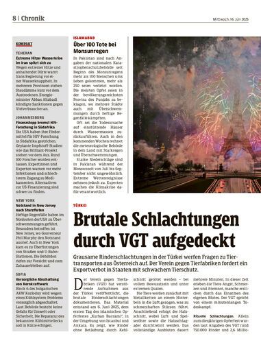 Grausame Rinderschlachtungen in der Türkei werfen Fragen zu Tiertransporten aus Österreich auf. Der Verein gegen Tierfabriken fordert ein Exportverbot in Staaten mit schwachem Tierschutz.