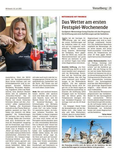GeoSphere-Meteorologe Georg Erlacher mit den Prognosen für Eröffnung und erste Aufführungen auf der Seebühne.