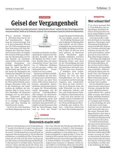 Salman Rushdie sei aufgrund seiner „Satanischen Verse“ selbst für den Anschlag auf ihn verantwortlich, heißt es in Teheran zynisch: ein zerrissenes Land im Schatten Khomeinis.
