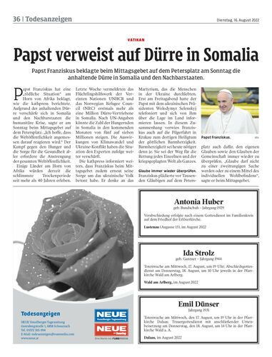 Papst Franziskus beklagte beim Mittagsgebet auf dem Petersplatz am Sonntag die anhaltende Dürre in Somalia und den Nachbarstaaten.