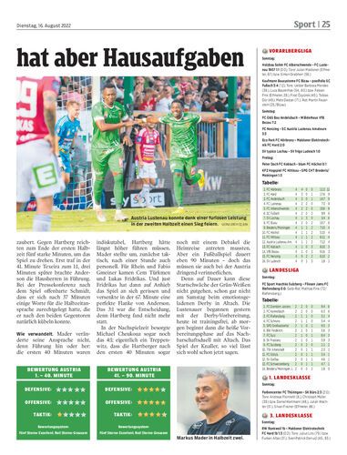 Austria Lustenau ist nach dem 4:1-Heimsieg vom Sonntag gegen den TSV Hartberg Vierter. Beim Heimspiel vor 3723 Zuschauer waren die Lustenauer erst schwach und dann bärenstark.