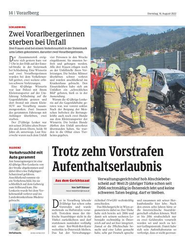Drei Frauen sind bei einem Verkehrsunfall in der Steiermark ums Leben gekommen, darunter zwei Vorarlbergerinnen.