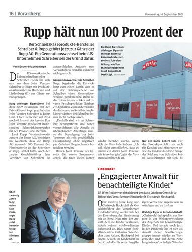 Der Schmelzkäseprodukte-Hersteller Schreiber & Rupp gehört jetzt zur Gänze der Rupp AG. Ein Generationswechsel beim US-Unternehmen Schreiber sei der Grund dafür.