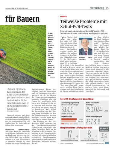 Österreichweit gab es in dieser Woche 247 positive PCR-Tests an den Schulen. In Vorarlberg wurde gestern getestet.