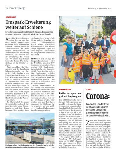 Erweiterungsbau soll im Oktober fertig sein. In dessen Erdgeschoß zieht dann Lebensmittelhändler Sutterlüty ein.