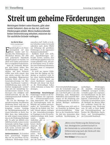 Meiningen fördert seine Bauern, gibt aber weder bekannt, dass es das tut, noch wer Förderungen erhält. Wenn Außenstehende keine Unterstützung erhalten, müssten dafür sachliche Gründe vorliegen.