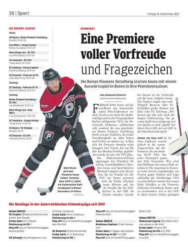 Die Bemer Pioneers Vorarlberg starten heute mit einem Auswärtsspiel in Bozen in ihre Premierensaison.