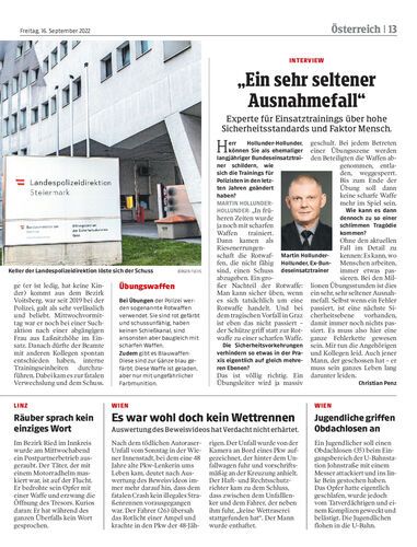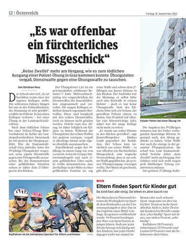 „Keine Zweifel“ mehr am Hergang, wie es zum tödlichen Ausgang einer Polizei-Übung in Graz kommen konnte. Übungsleiter vergaß, Dienstwaffe gegen eine Übungswaffe zu tauschen.