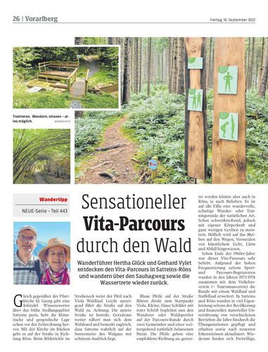 Wanderführer Hertha Glück und Gerhard Vylet entdecken den Vita-Parcours in Satteins-Röns und wandern über den Sauhagweg sowie die Wassertrete wieder zurück.
