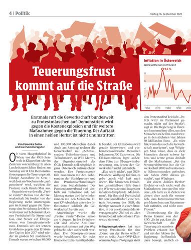 Erstmals ruft die Gewerkschaft bundesweit zu Protestmärschen auf. Demonstriert wird gegen die Kostenexplosion und für weitere Maßnahmen gegen die Teuerung. Der Auftakt in einen heißen Herbst ist nicht unumstritten.