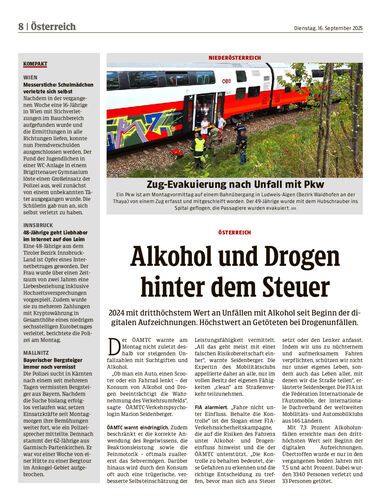 2024 mit dritthöchstem Wert an Unfällen mit Alkohol seit Beginn der digitalen Aufzeichnungen. Höchstwert an Getöteten bei Drogenunfällen.