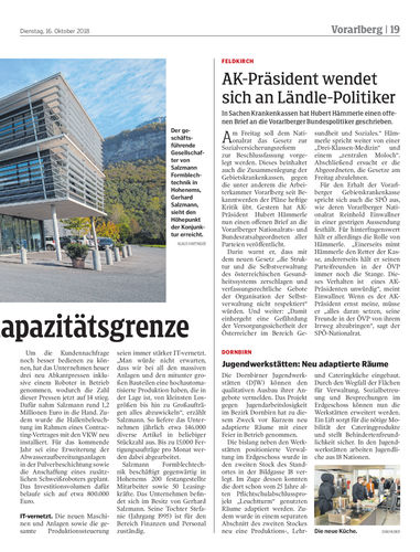 In Sachen Krankenkassen hat Hubert Hämmerle einen offenen Brief an die Vorarlberger Bundespolitiker geschrieben.