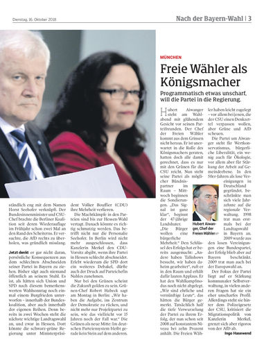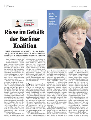 Bayern-Wahl als „Warnschuss“ für die Regierung, Grüne als neue Mitte: Im deutschen Parteiensystem bleibt kein Stein auf dem anderen.