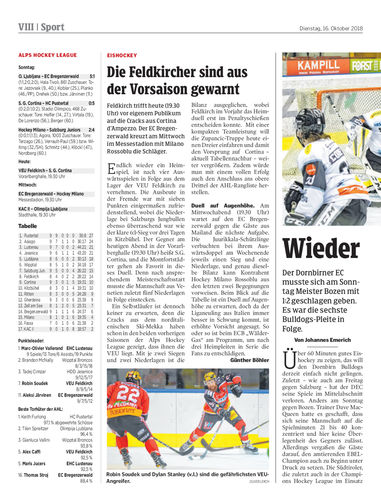 Der Dornbirner EC musste sich am Sonntag Meister Bozen mit 1:2 geschlagen geben. Es war die sechste Bulldogs-Pleite in Folge.