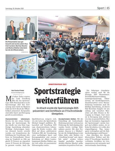 In Altach wurde die Sportstrategie 2025 präsentiert und Zertifikate an 17 Fachverbände übergeben.