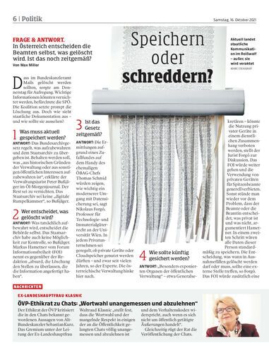 FRAGE & ANTWORT. In Österreich entscheiden die Beamten selbst, was gelöscht wird. Ist das noch zeitgemäß? Von Max Miller
