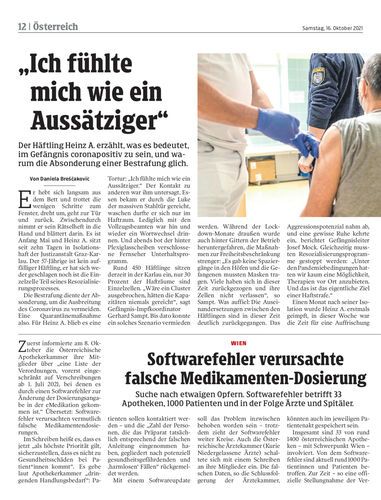Der Häftling Heinz A. erzählt, was es bedeutet, im Gefängnis coronapositiv zu sein, und warum die Absonderung einer Bestrafung glich.