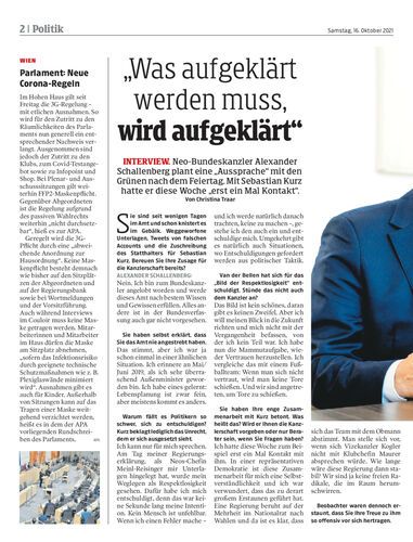 Neo-Bundeskanzler Alexander Schallenberg plant eine „Aussprache“ mit den Grünen nach dem Feiertag. Mit Sebastian Kurz hatte er diese Woche „erst ein Mal Kontakt“. Von Christina Traar