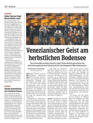 Das Ensemble Europa Galante unter Fabio Biondi gestaltete am Donnerstagabend den Saisonauftakt der Bregenzer Meisterkonzerte.