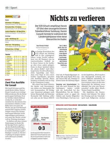 Der SCR Altach empfängt heute (17 Uhr) den unangefochtenen Tabellenführer Salzburg. Damir Canadi formierte während der Länderspielpause eine neue Hierarchie im Kader.
