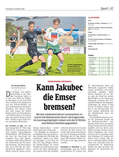 Bei den wiedererstarkten Lauterachern erwartet die Hohenemser heute viel Gegenwehr. Im Sonntagshighlight stehen sich der SC Röthis und Admira Dornbirn gegenüber.
