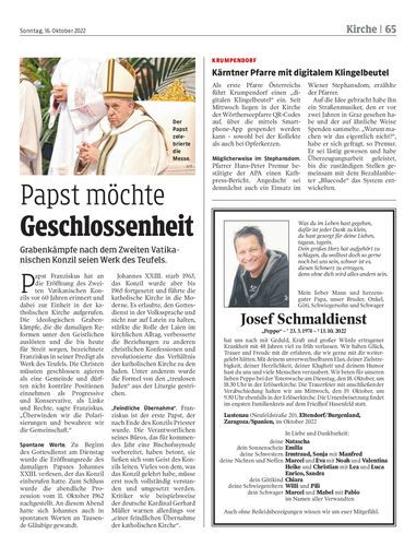 Papst möchte Geschlossenheit