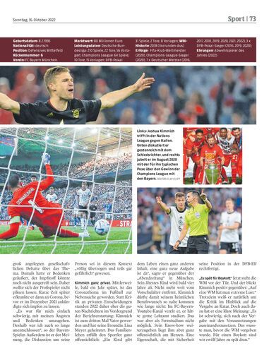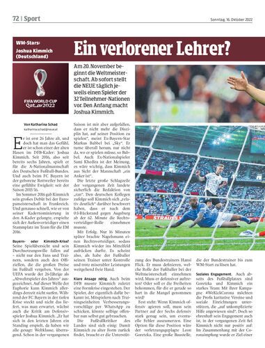 Am 20. November beginnt die Weltmeisterschaft. Ab sofort stellt die NEUE täglich jeweils einen Spieler der 32 Teilnehmer-Nationen vor. Den Anfang macht Joshua Kimmich.