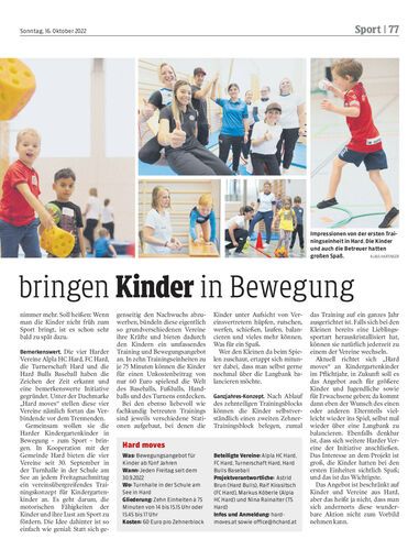 In Hard bewegt sich was. Die vier ortsansässigen Vereine Alpla HC Hard, FC Hard, die Turnerschaft Hard und die Hard Bulls bringen unter der Dachmarke „Hard moves“ Kindergartenkinder zum Sport.