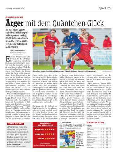 Es hat nicht sollen sein! Beim Heimspiel in Bregenz unterlag die U18 der Akademie Vorarlberg ihren Gästen aus dem Burgenland mit 0:1.