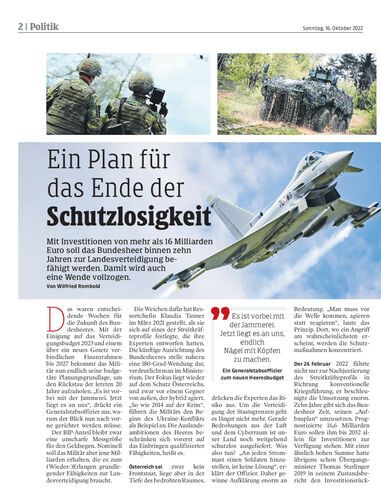 Mit Investitionen von mehr als 16 Milliarden Euro soll das Bundesheer binnen zehn Jahren zur Landesverteidigung befähigt werden. Damit wird auch eine Wende vollzogen. Von Wilfried Rombold