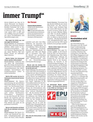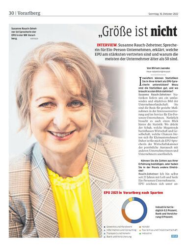 Interview. Susanne Rauch-Zehetner, Sprecherin für Ein-Person-Unternehmen, erklärt, welche EPU am stärksten vertreten sind und warum die meisten der Unternehmer älter als 50 sind.