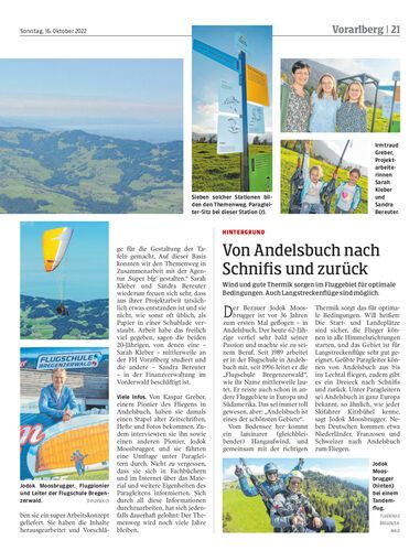 An starken Tagen fliegen bis zu 350 Paragleiter von der Niedere in Andelsbuch los. Warum das Gebiet so beliebt ist, wird nun in einem Themenweg erklärt. Er wurde auf Grundlage einer Diplomarbeit errichtet.