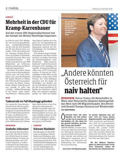 Trevor Traina, US-Botschafter in Wien, über Österreichs jüngsten Spionagefall, das Nein zum UN-Migrationspakt, den Brexit und Donald Trumps Chancen auf Wiederwahl. Von Adolf Winkler