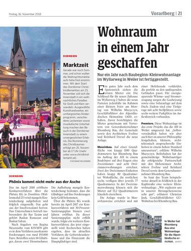 Nur ein Jahr nach Baubeginn: Kleinwohnanlage im Wyllarweg in Weiler ist fertiggestellt.